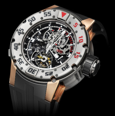 Das RM-Kaliber 025 vereint zwei Extreme: Die Komplikation eines Tourbillons mit der berüchtigten Komplexität einer Chronographenbewegung. Dies führte zu einer Reihe neuer Impulse, wie z. B. die Herstellung und Fertigung einer Reihe von Teilen wie Säulenrad und Hebel aus Titan, um die Trägheit zu reduzieren und den Energieverbrauch um 50% zu senken. Dadurch wird die Reibung an der Spindel stark reduziert und die Sprünge und Stöße des Chronographenzeigers während des Anhaltens und Startens werden eliminiert und die Präzision der Uhr erhöht. Die Herstellung und Montage der Uhr des RM 025 Tourbillon Diver dauert viele Monate, und nur eine bestimmte Anzahl von Uhrmachern ist in der Lage, ihre komplexe Montage und Prüfung zu bewältigen. Aus diesem Grund ist es nur möglich, eine sehr begrenzte Anzahl dieser Uhren pro Jahr herzustellen.Alle Modelle sind in 18-karätigem Rot- oder Weißgold und Titan erhältlich und verfügen über 18 Karat Rotgold-Laschen mit einem verschraubten und einem Tauchgummiband.Für 2009 ist eine lang erwartete Ergänzung der Damenkollektion bei Richard Mile Uhren mit der Präsentation der Armbanduhr "Celtic Knot" Ladies Tourbillo n von RM019 Realität geworden . Das erste und auffälligste Merkmal dieser neuen Kreation ist der mit Diamanten besetzte Celtic Knot, der sich über und durch verschiedene Teile des Uhrwerks bewegt und verbindet, den Wickelkörper, den Gangreserveanzeiger und das Tourbillon in einem endlosen Zyklus verbindet und verbindet. Die Stunden- und Minutenzeiger sind in ihrer asymmetrischen Anordnung innerhalb der fließenden Linien dieses keltischen Knoten-Musters auffällig.